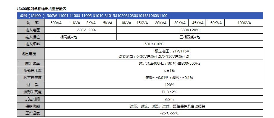 JS400系列400Hz中頻電源專門為航空、電氣設(shè)備研發(fā)制造,可廣泛應(yīng)用于飛機(jī)啟動、維修供電、組裝基地、及機(jī)載設(shè)備、雷達(dá)等電子設(shè)備實(shí)驗(yàn)室等場所,為其提供穩(wěn)定的400Hz交流電。